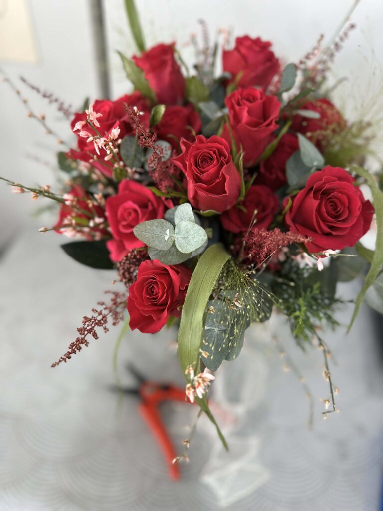 Our classic Valentine’s Day bouquet features vibrant red blooms, carefully arranged to highlight their natural beauty and intoxicating fragrance. Perfect for a girlfriend, wife, or loved one, this arrangement embodies the profound connection that binds two souls.